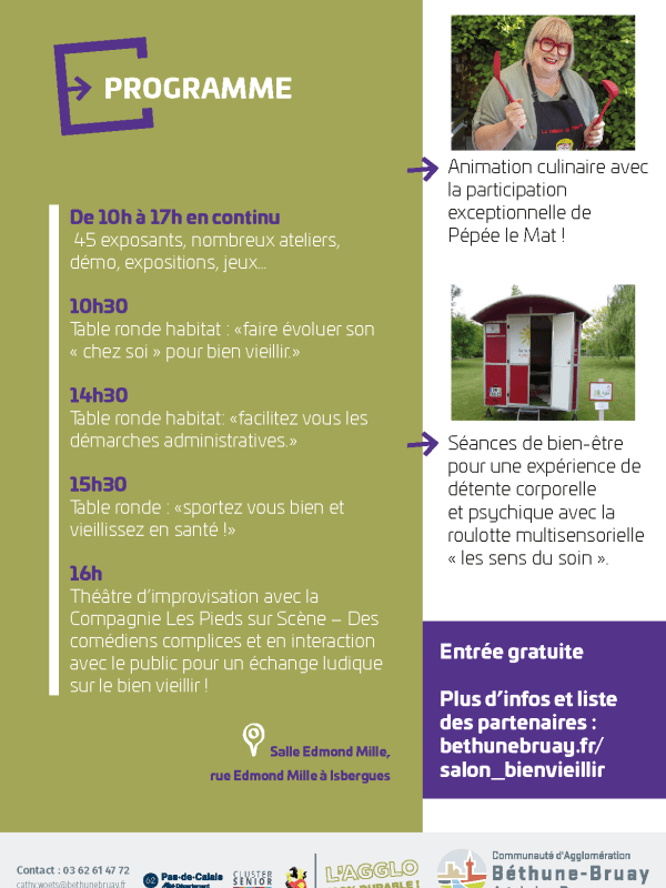 Dans ce contexte, l'Agglomération souhaite aider les séniors à se maintenir chez eux, le plus longtemps possible dans de bonnes conditions de vie. Retrouvez de nombreux stands de démonstrations, des tables rondes et conseils tout au long de la journée.