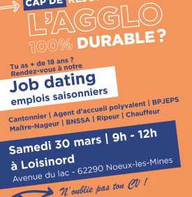 Emploi Tu cherches un job saisonnier ? Rendez-vous au job dating de l'Agglo ! La Communauté d’agglomération organise un job dating pour ses besoins saisonniers le samedi 30 mars
