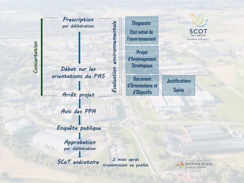 Au regard des constats établis à la lumière de cette évaluation, des évolutions législatives et réglementaires, mais surtout des ambitions politiques pour le territoire, la Communauté d’agglomération de Béthune-Bruay, Artois Lys Romane a décidé d’engager la procédure de révision du SCoT de l’Artois par délibération du 27 septembre 2017.